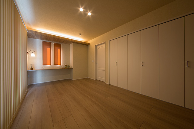 土地の形を活かした中庭付の建物は笠木にも洋瓦をあしらい、天然石を多用し上品なプロヴァンス風の外観。照明計画にも力を入れダウンライトの配置や間接照明の光の見え方も美しくなるよう工夫しました。外からの視線を気にすることなく寛げるライトコートは、お子様を遊ばせるのも良しペットを飼うのも良し日向ぼっこをするのも良しの使い勝手の良い空間です。木製のキッチンやアクセントタイルなど価値あるものを随所に使用した高級感のある建物です。