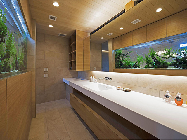 南側に広がる海原の風景とともに、西側に居並ぶ箱根の山々を見渡す。この上ない程に開放感あふれる邸宅となった。