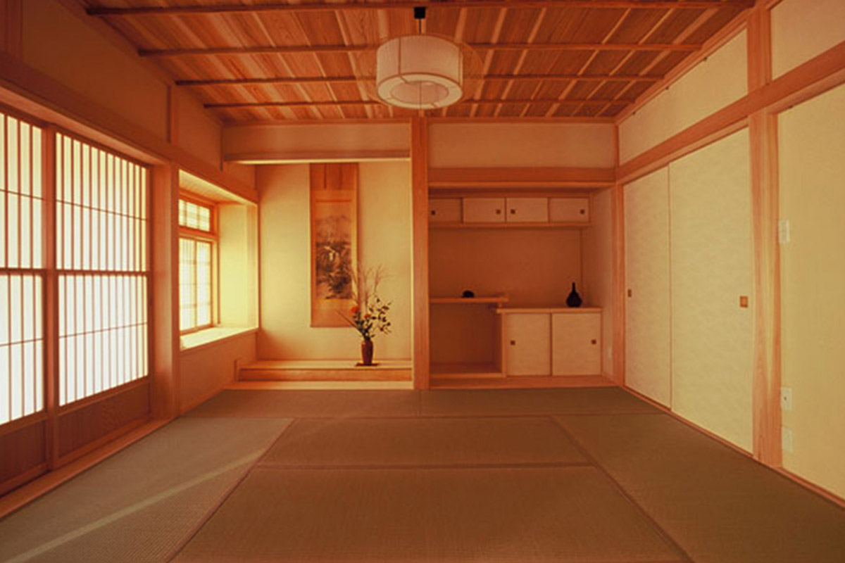 1階が老父・母の世帯で、昔ながらの棹ブチ天井・書院・床のある和室が際立っています。