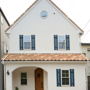 真っ白な漆喰が青空に映えるペットと暮らす家