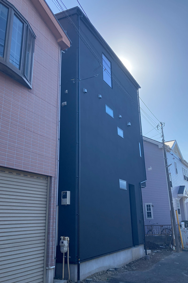 - 黒い外壁は、モダンな住宅デザインに特に適しています。シンプルで無駄のないデザインの家には黒が映え、現代的で洗練された印象を与えます。また、和モダンやナチュラルなどさまざまな外観に合わせられる汎用性の高さも魅力です。しかし、黒い外壁には注意点もあります。特に、白っぽい汚れが目立ちやすい点が挙げられます。泥や砂ぼこり、カビ、鳥のフンなどの白っぽい汚れが目立ちやすくなります。そのため、汚れに強い塗料や外壁材を選ぶのがおすすめです。たとえば、セルフクリーニング機能を持つ低汚染塗料を利用することで、外壁の表面に水が薄く伸び広がる性質が高くなり、汚れを雨水などで洗い流すことができます。また、黒い外壁は熱を吸収しやすく、夏場の高温化が懸念されます。日射吸収率が高いため、夏場に外壁の表面温度が50~60℃に達することもあり、建物全体が熱を蓄えやすくなります。この対策として、遮熱塗料の使用や高性能な断熱材の採用、庇や植栽の設置などが有効です。 さらに、黒い外壁は景観への影響も考慮する必要があります。住宅密集地では近隣住民との調和を考慮することが大切です。黒い外壁は周囲に対して圧迫感を与えやすく、暗い印象を持たれることがあります