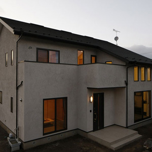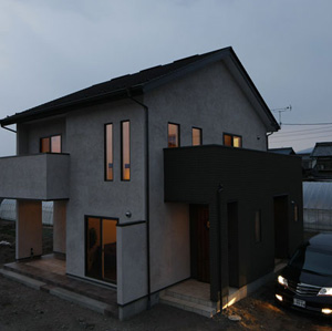 木造耐火の二世帯住宅、黒い外観でシックにまとめて