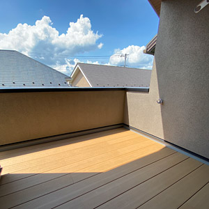 アカシアのデッキパネルを敷き込んで防水層の保護...