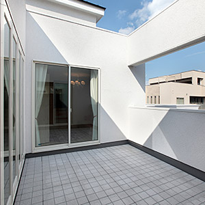 3Fバルコニーから上がるルーフバルコニーへと続...