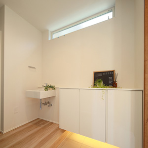 高窓と収納棚で明るさと機能性を両立させた白色を...