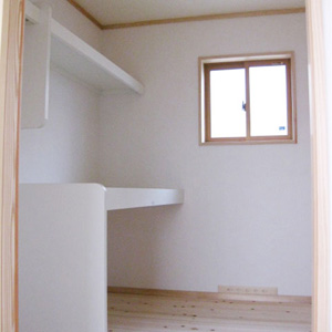 白くて清潔感のあるお部屋にあるスタディコーナー