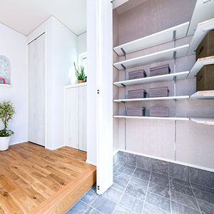ベビーカーなどもそのまま置ける広い土間が特徴の...