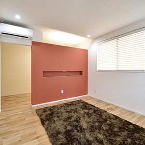 木の風合いが温かく、自然素材を取り入れた壁がア...