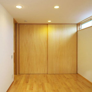 隣戸隙間より採光を確保した1F主寝室は2室に分...