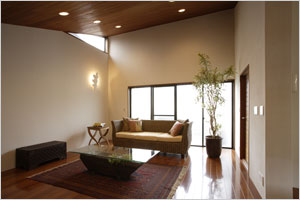 インテリアにこだわりを持つご主人のご希望は、「和風」、「コタツのある空間」、「竹林の景観」、「渋いピンクの塗り壁」の4点。