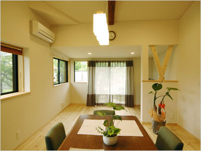 - リビングのフローリングは無垢材、キッチン・ダイニングの床には床暖房をつけて冬場あたたか