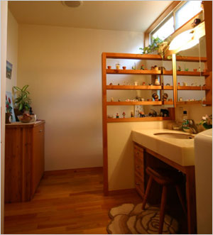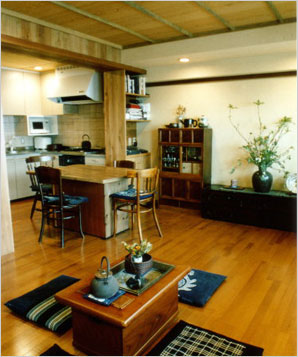呼吸機能のある自然素材をできるだけ内装材として使い、住まい全体が自然の状態で呼吸をして、住まいの中の湿気を調節する、そんな『呼吸する住まい』の設計の仕事を進めると同時に、地域に根付いた工務店や材木店と協力しあい、自然素材を使用した住まいをできるだけローコストで施工できるようなネットワークづくりも進めています。