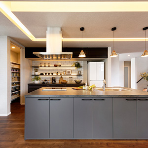 ここ最近のキッチンは家事をするだけではなく、家族の憩いや趣味の空間として利用される方も増えています。人気のアイランドキッチンは大人数で会話をしながら調理を楽しめます。家事動線がコンパクトなL字型キッチン、家族との会話が弾む対面式のI型キッチン等。間取りに合わせて選ばれたキッチンの形や収納も参考になる家の事例ばかりを集めました。お洒落でセンスのいいアイデア満載なキッチンで毎日の家事が楽しくなること間違いありません!使い勝手やデザイン、ダイニングとの動線や収納など、そんなキッチンを参考に家づくり検討してみてください。